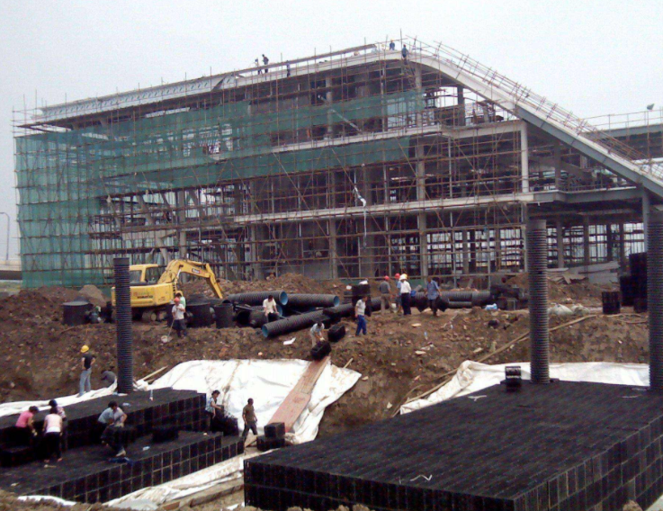 5、雨水收集模塊的安裝,要嚴(yán)格按照工藝要求進(jìn)行安裝,防止雨水收集模塊坍落造成安全事故;